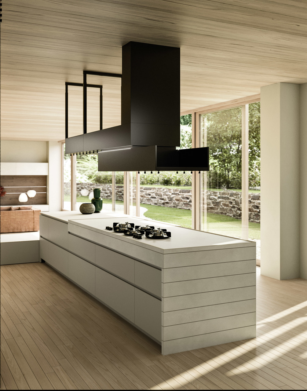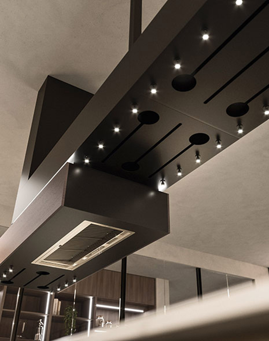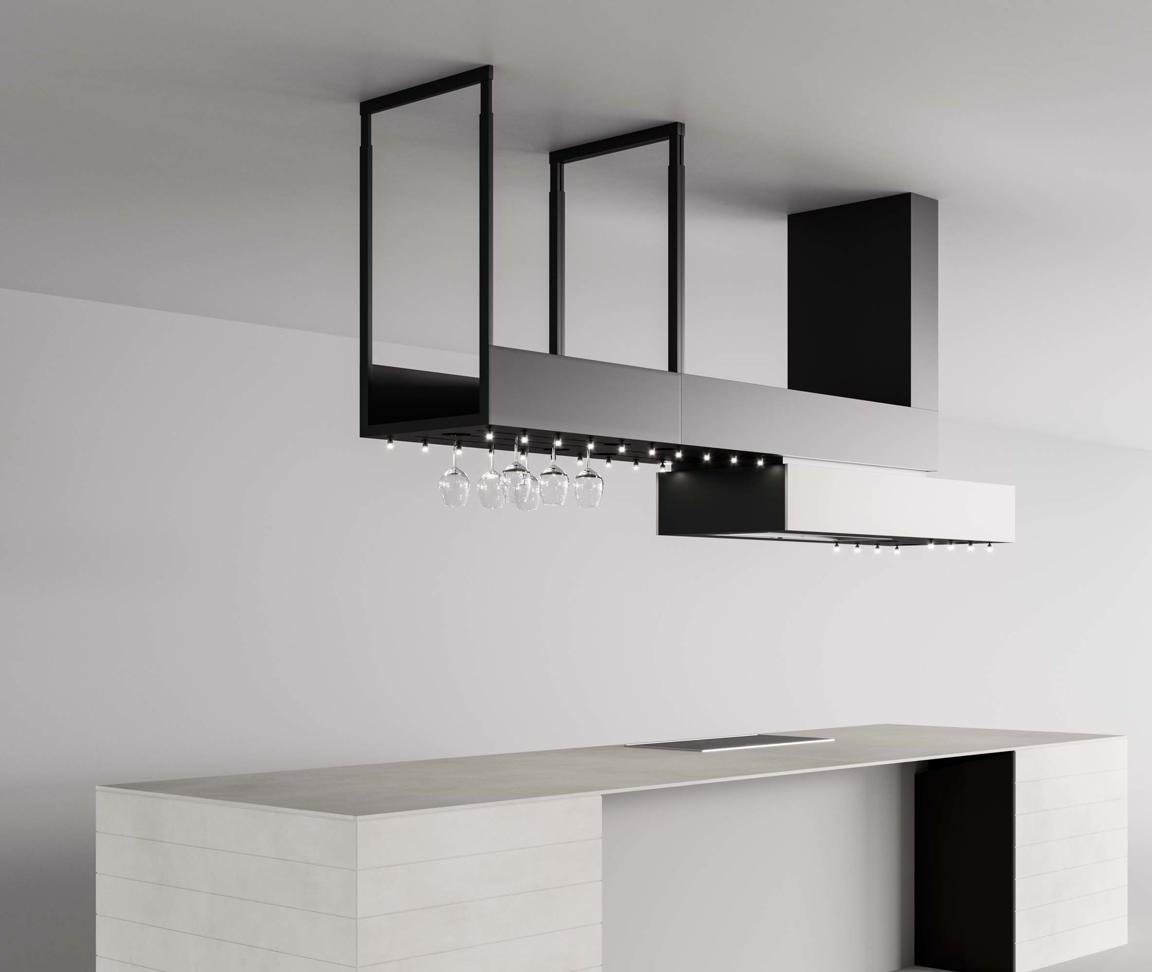 Lấy cảm hứng từ trò chơi domino, Domina bao gồm nhiều yếu tố khác nhau để thiết kế một chiếc máy hút mùi theo ý muốn. Sản phẩm có hai cấu hình, nhỏ và lớn, tích hợp thêm một cấu trúc phụ vào phần máy hút mùi, được trang bị giá để ly rượu và đèn chiếu sáng định hướng. Mặt dưới có thể được ốp bằng các tấm vật liệu để phù hợp với màu sắc của nhà bếp.