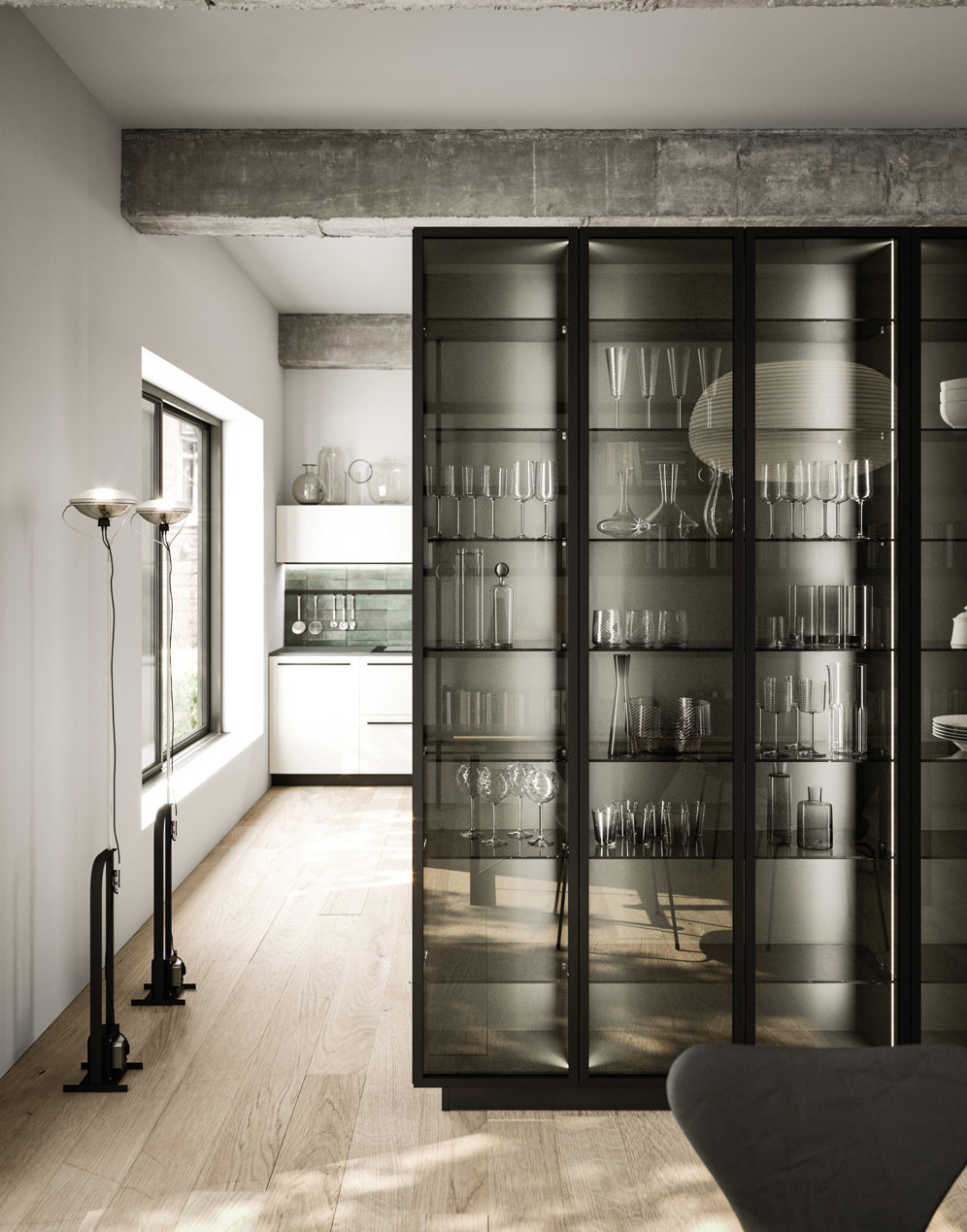 Các tủ trưng bày Rialto bằng kính Fumé giúp bảo quản và tôn lên vẻ đẹp của các vật dụng bên trong. Sang trọng và tinh tế, chúng làm đẹp không gian bằng cách tạo sự kết nối giữa khu vực bếp và phòng khách. Chúng có sẵn các phiên bản tủ cao treo tường, tủ treo tường hoặc các yếu tố có thể tích hợp vào phía sau đảo bếp hoặc bán đảo.